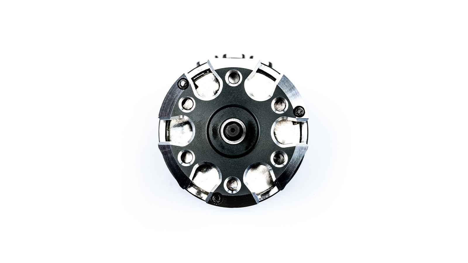 Der Motor ist mit einem zweiachsig ausgewuchteten Sinterrotor ausgestattet, dessen Wellenkonstruktion eine verlängerte Montagefläche für bessere mechanische Stabilität bietet. Sämtliche Innenteile sind auf maximale Effizienz und vibrationsfreien Betrieb optimiert. Zwei kompakte und präzise 4x10x4mm Kugellager sorgen für Performance und Langlebigkeit, während die aktualisierte mehrlagige Leiterplatte den Innenwiderstand reduziert.