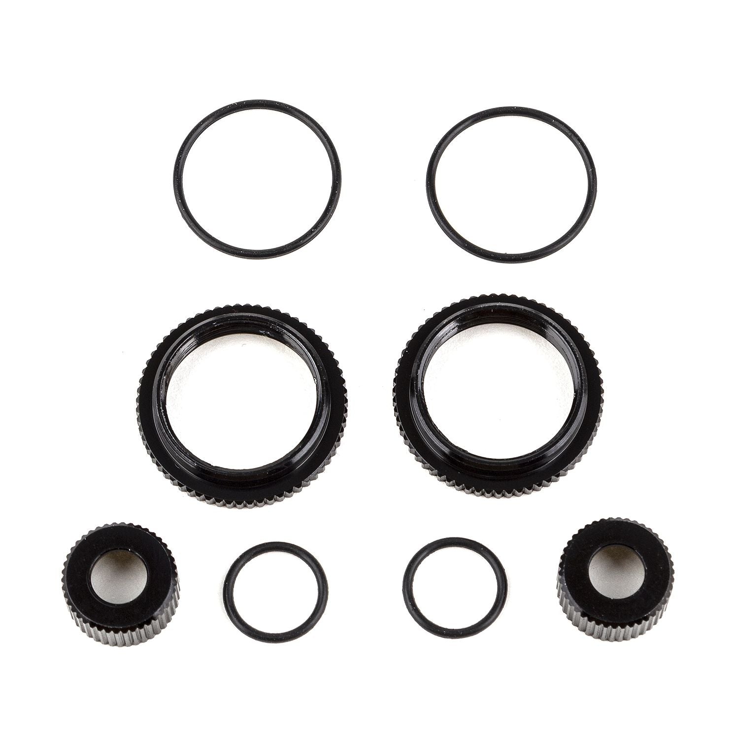 Team Associated 13mm Shock Collar and Seal Retainer Set, black aluminum